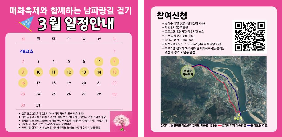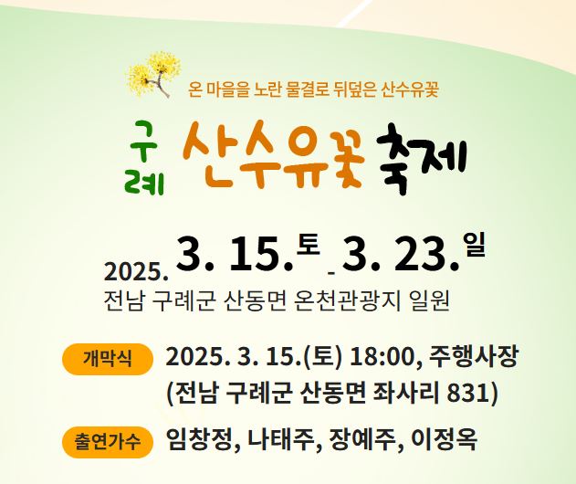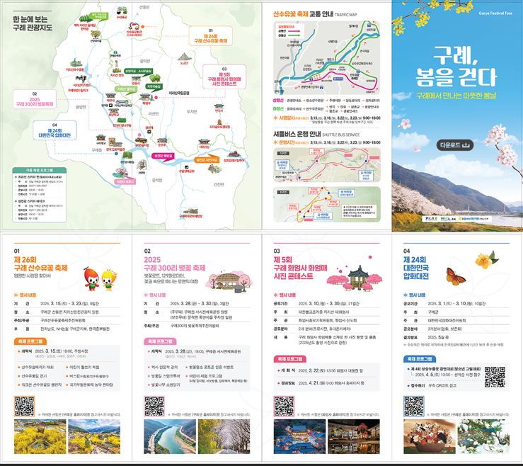 광양 매화축제, 구례 산수유꽃 축제, 영암왕인문화축제들 정보 확인하시고 즐거운 여행 되시길 바라요~!
