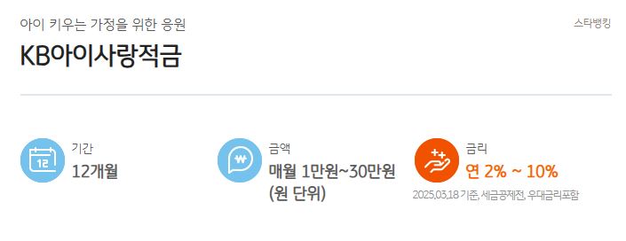 - 아동수당 우대이율 : 국민은행 계좌로 아동수당 3회 이상 수령 연 0.1%